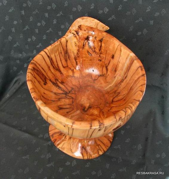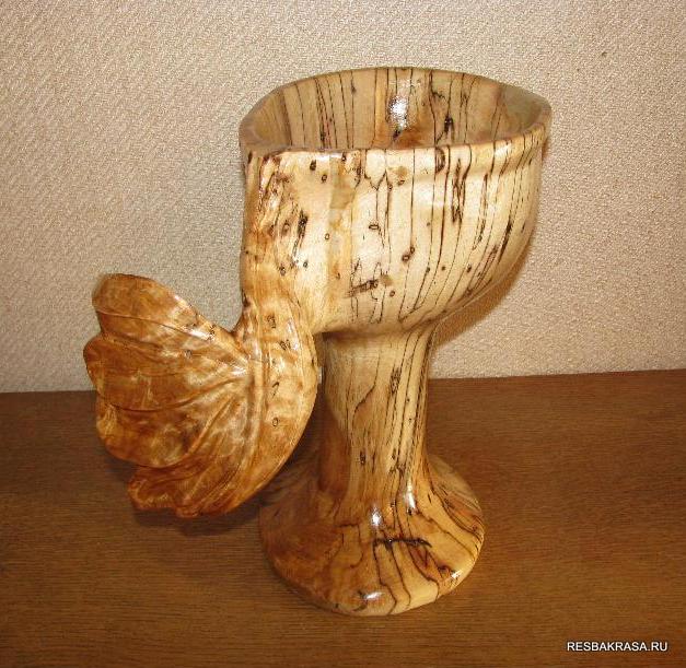 Резная ваза-кубок из подгнившей березы «Волосы Феи Дождя». Текстура древесины типична для подгнившего ствола березы.