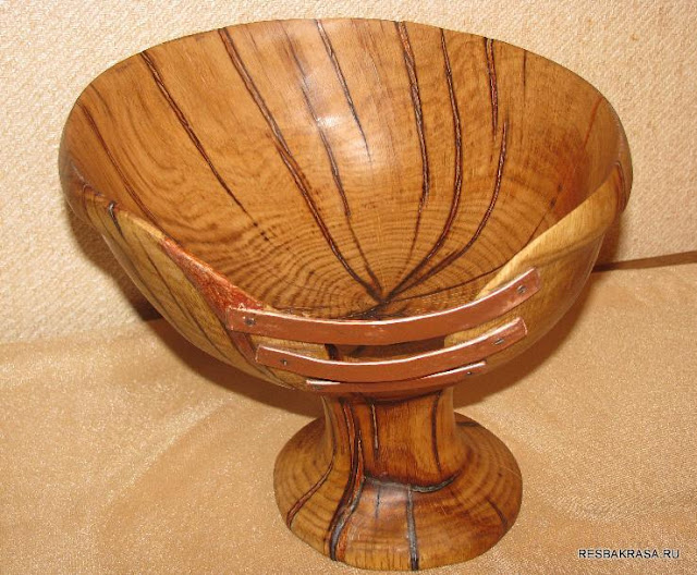 И вот последняя, третья резная ваза из шпальта дуба.Разве это не красивая древесина?